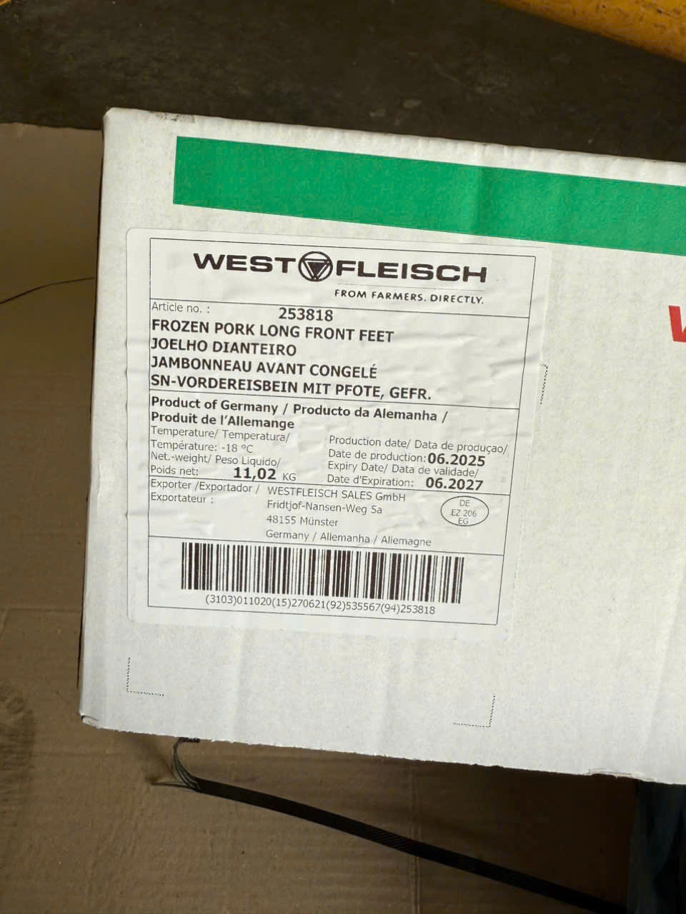 Chân giò heo trước nguyên chiếc Westfleisch được nhập khẩu trực tiếp từ Đức, thuộc thương hiệu Westfleisch – nhà sản xuất thịt uy tín hàng đầu châu Âu. Sản phẩm được sơ chế, cấp đông nhanh bằng công nghệ hiện đại, đảm bảo giữ nguyên độ tươi ngon, dinh dưỡng và an toàn thực phẩm.