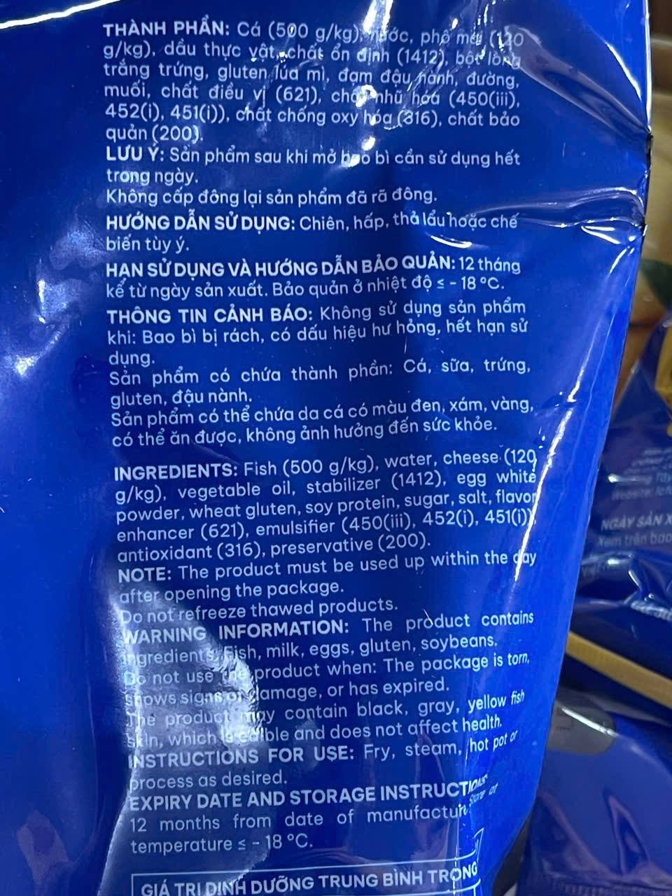 Sản phẩm có chứa cá, sữa, trứng, gluten, đậu nành – người dị ứng cần cân nhắc.